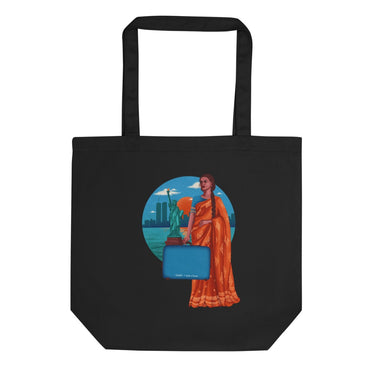 Through her design, Hanifa wanted to depict Lakshmy proudly arriving in her sari–as Lakshmy’s younger self had originally imagined–and create an iconic image for South Asian immigrants.