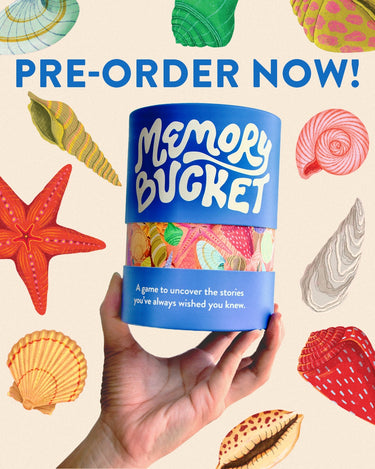 In each round, one player—the Storyteller—selects a specific moment from their past and answers a prompt to share a story from that time. The memory unfolds as other players ask follow-up questions to dig deeper into the experience. Once all questions have been answered, the memory has been collected and a seashell goes into the Memory Bucket.