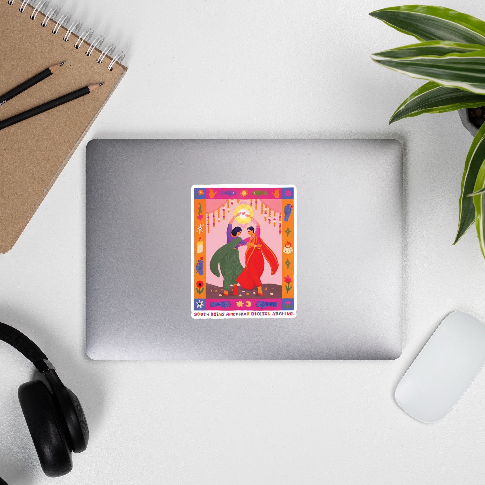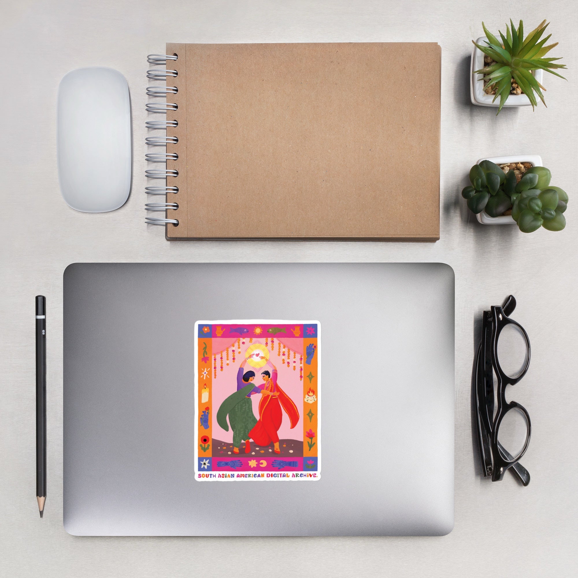 Ro Maharjan’s artwork for “Finding Love” was inspired by Mala Nagarajan and Vega Subramaniam’s celebration of queer love and chosen family, as shared in the “Finding Love, Forming Family” essay in Our Stories.