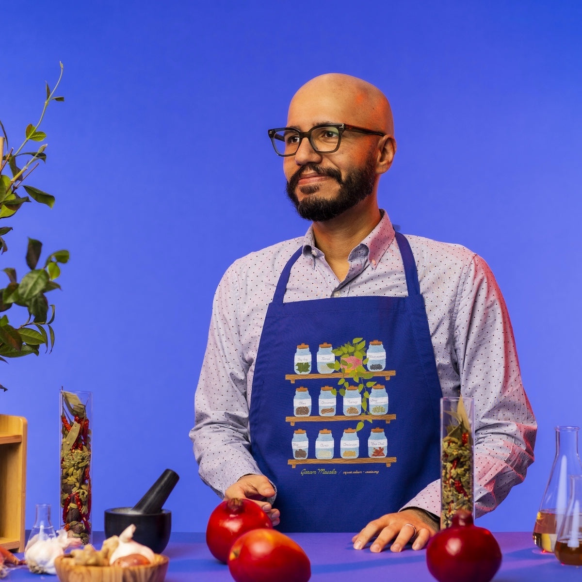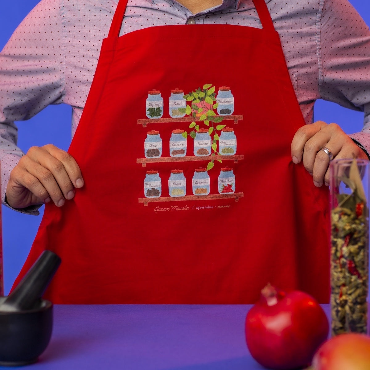 Safwat Saleem’s design for “Garam Masala,” was inspired by SAADA’s Patel Brothers archival collection. His design pays homage to the search for spices and the rare moment of finding a small, but important, piece of home away from home through just the right blend.