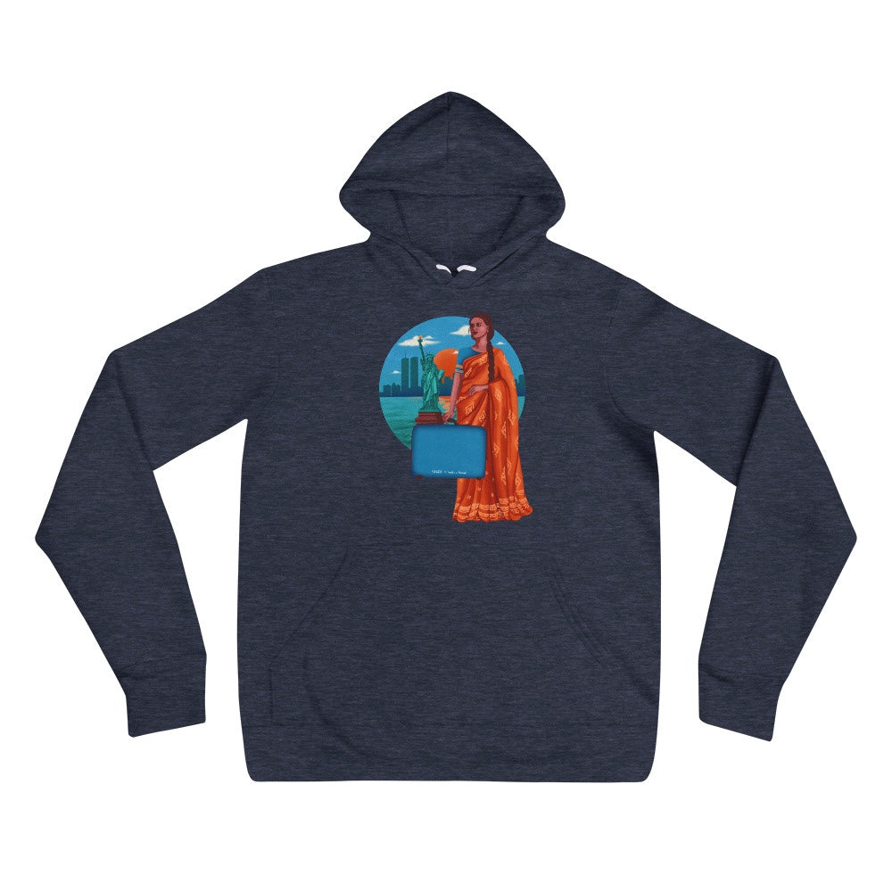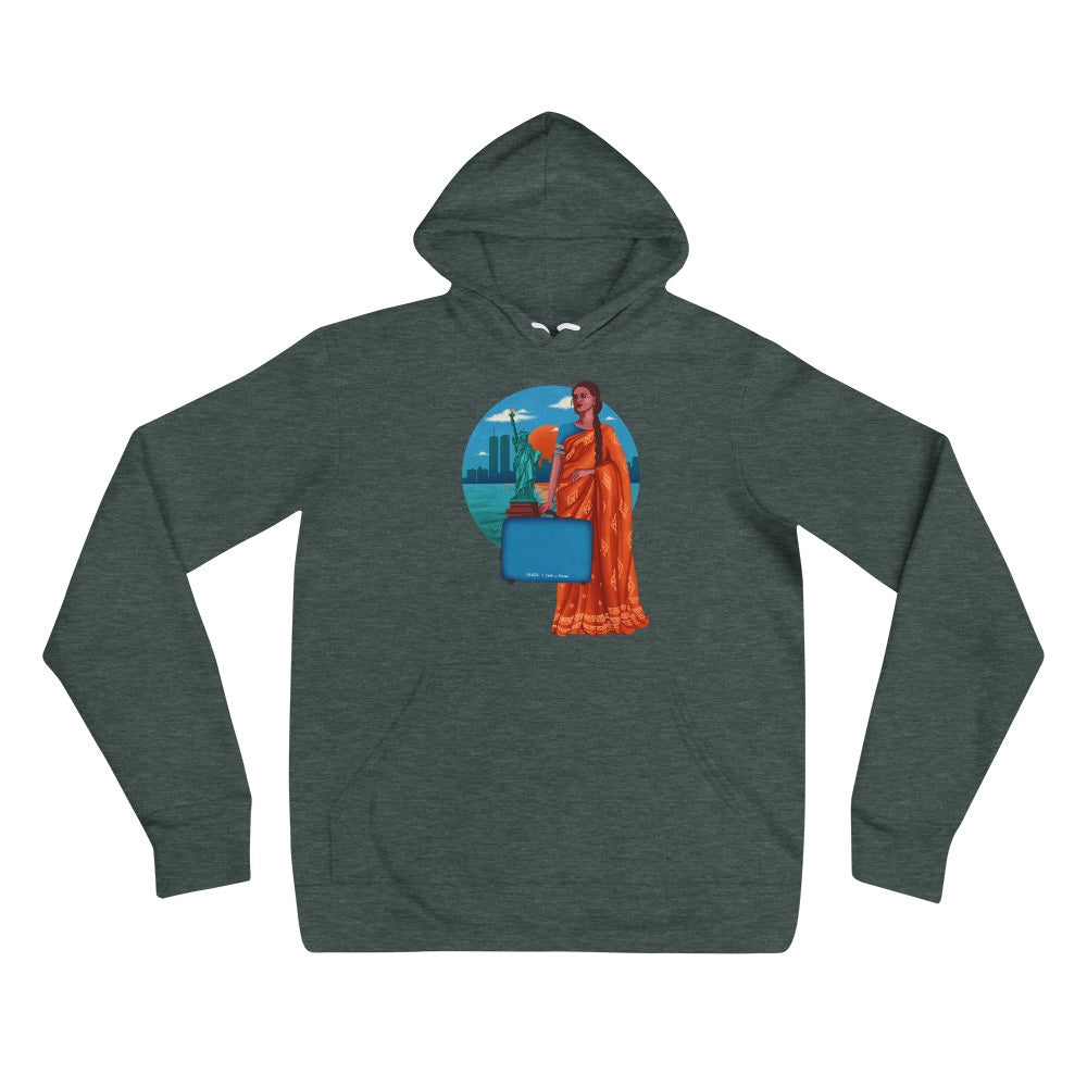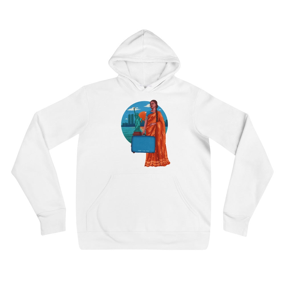 Hanifa Hameed's artwork for "Arrival" was inspired by the story of Lakshmy Parameswaran's journey from India to the U.S. in 1973, when she was 24 years old.