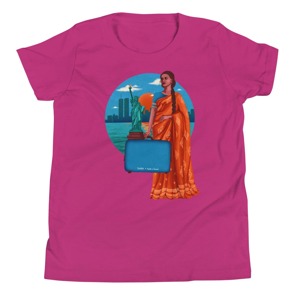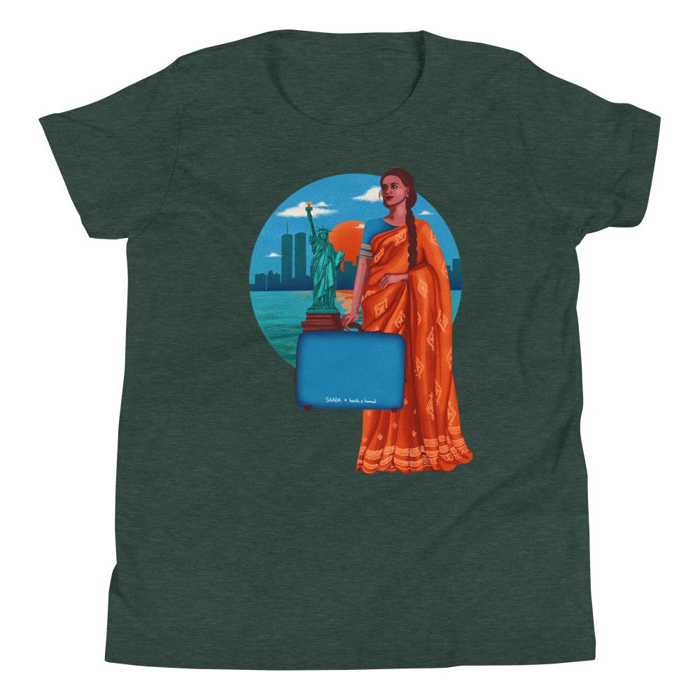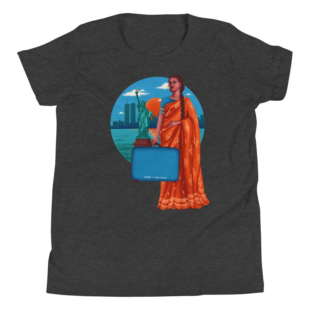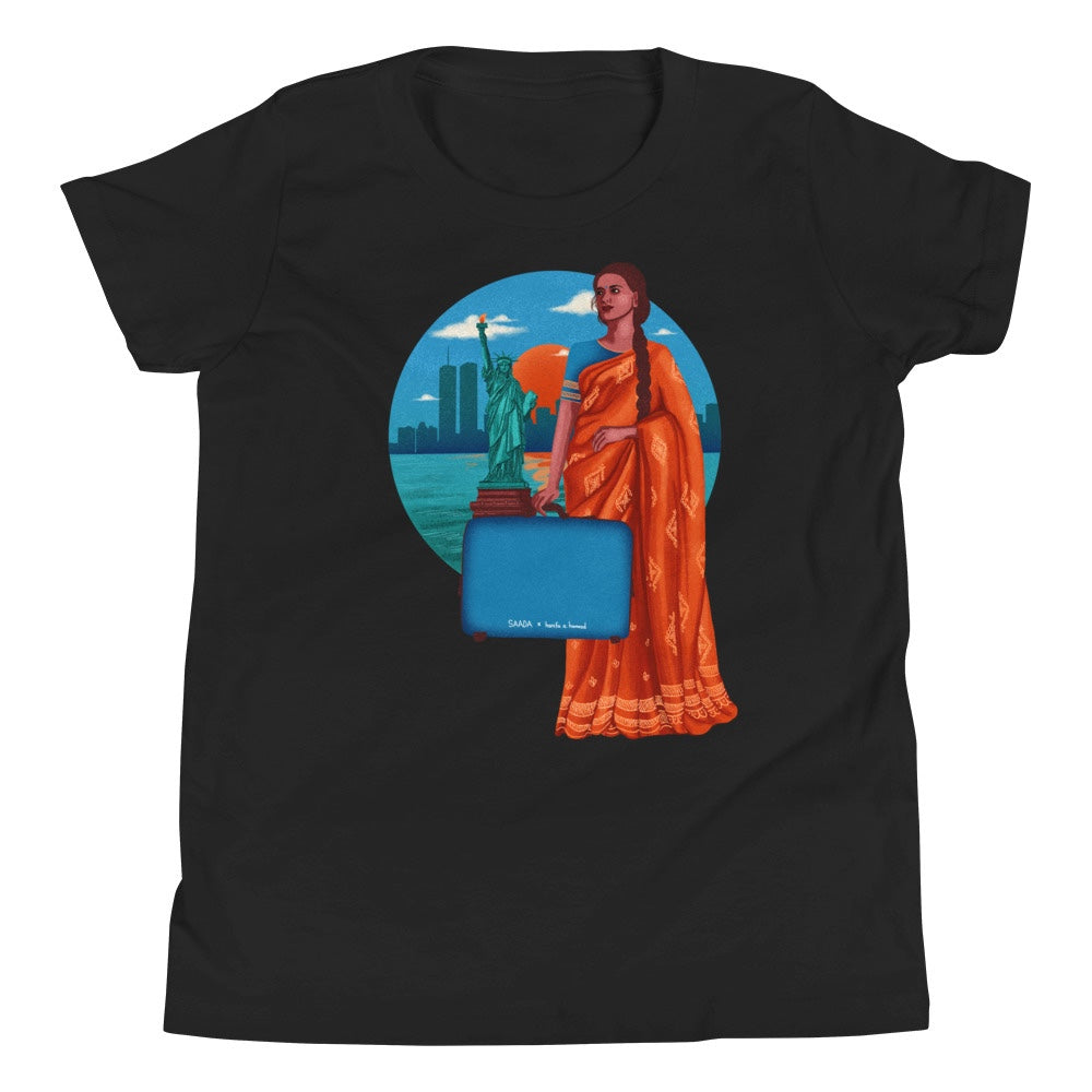 Hanifa Hameed's artwork for "Arrival" was inspired by the story of Lakshmy Parameswaran's journey from India to the U.S. in 1973, when she was 24 years old.