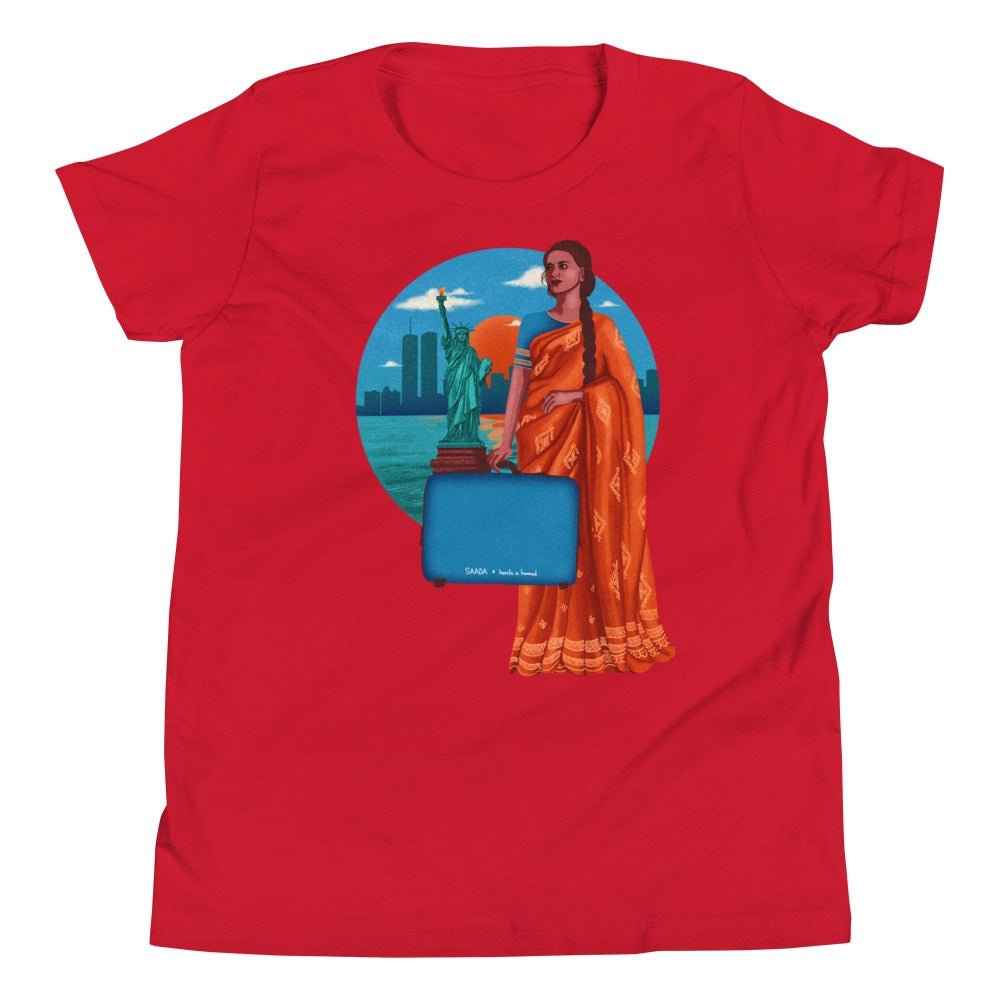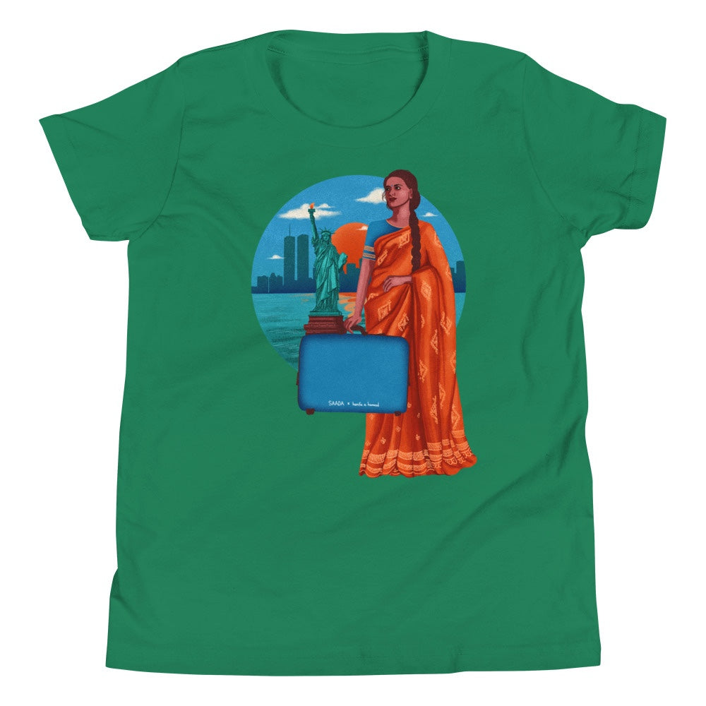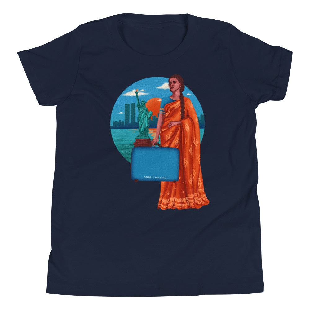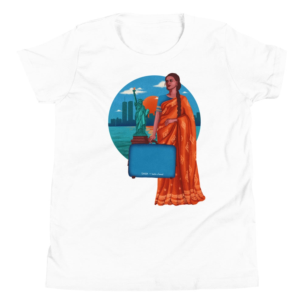 Hanifa Hameed's artwork for "Arrival" was inspired by the story of Lakshmy Parameswaran's journey from India to the U.S. in 1973, when she was 24 years old.
