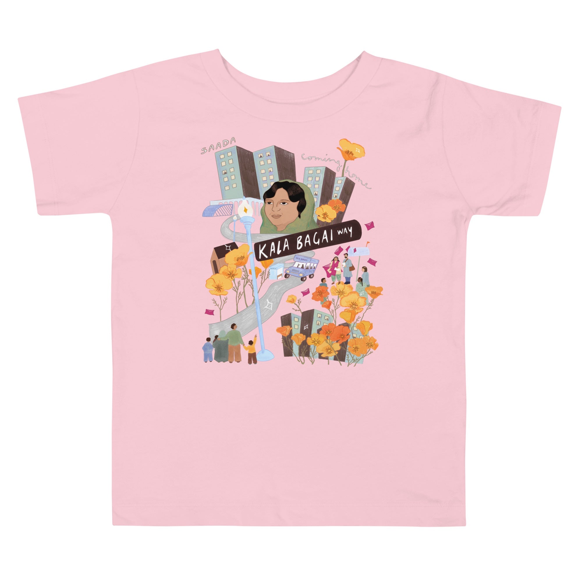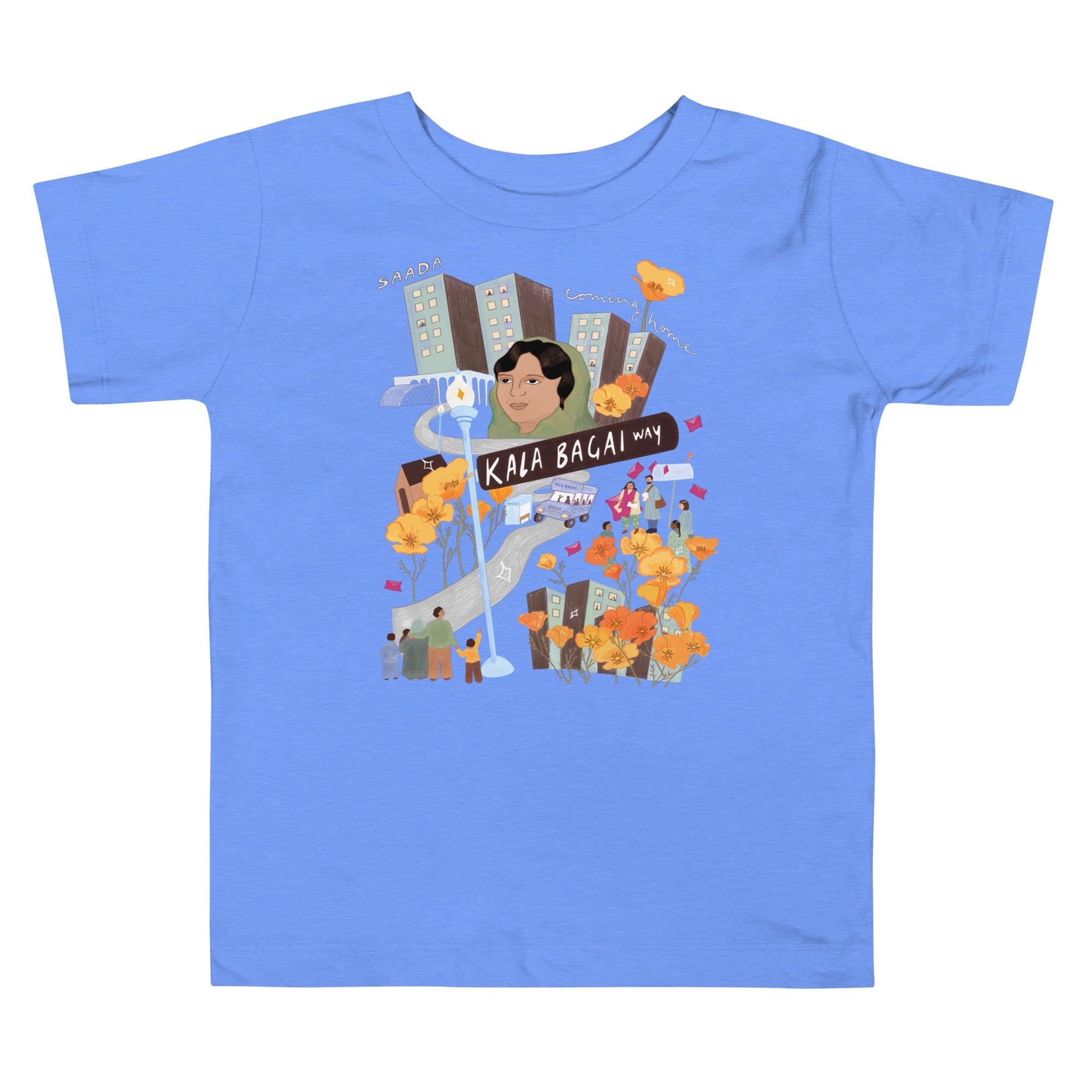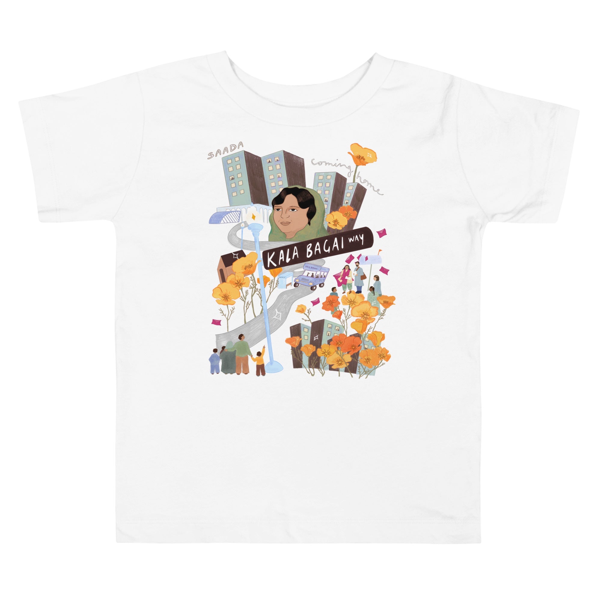 Shurjo Mukhi’s artwork for “Coming Home” was inspired by the campaign that successfully renamed a section of Shattuck Avenue in downtown Berkeley as Kala Bagai Way, as shared in the “Kala Bagai” essay in Our Stories.