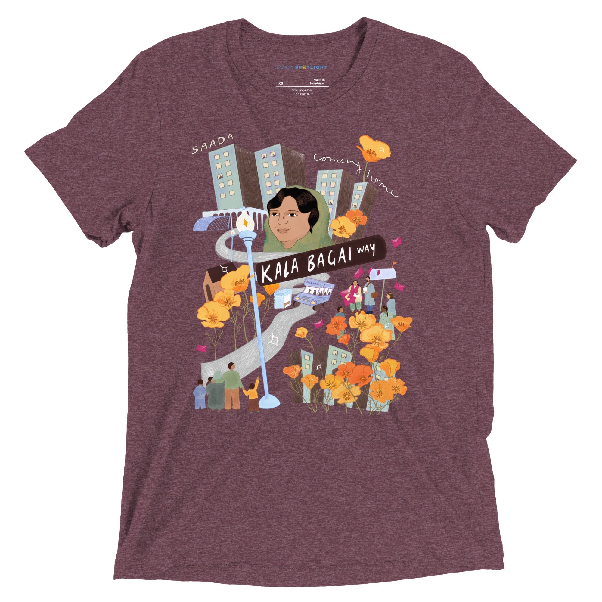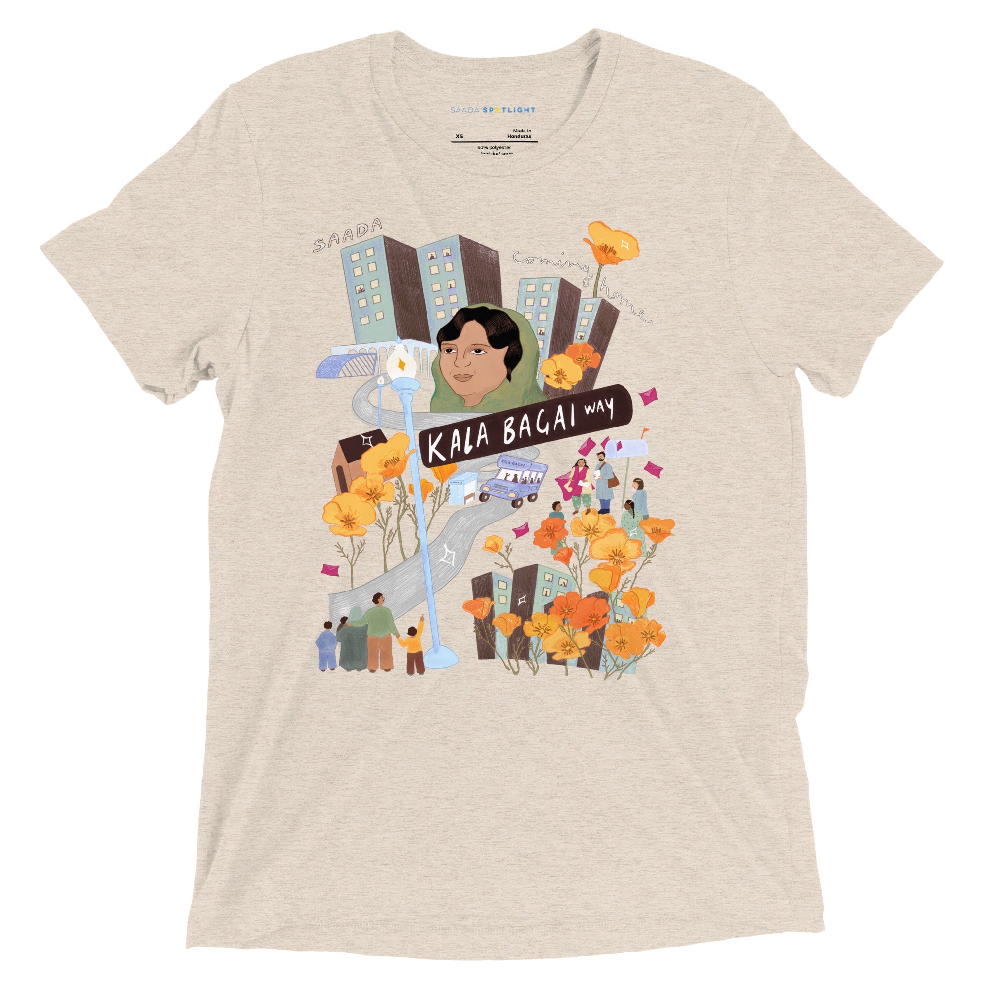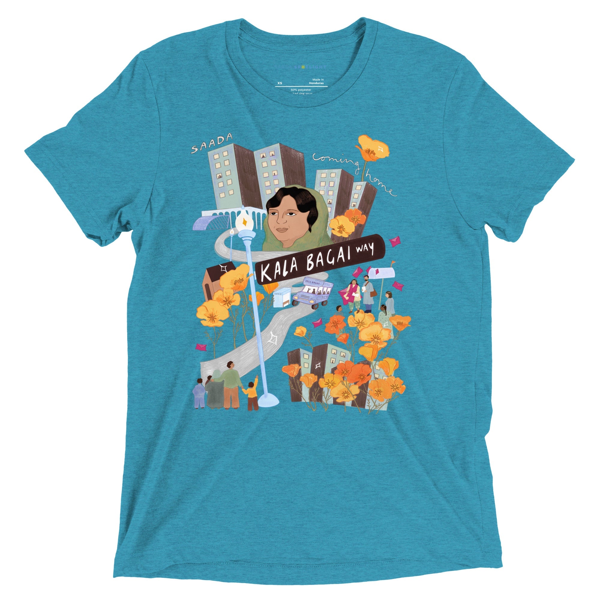 Shurjo Mukhi’s artwork for “Coming Home” was inspired by the campaign that successfully renamed a section of Shattuck Avenue in downtown Berkeley as Kala Bagai Way, as shared in the “Kala Bagai” essay in Our Stories.