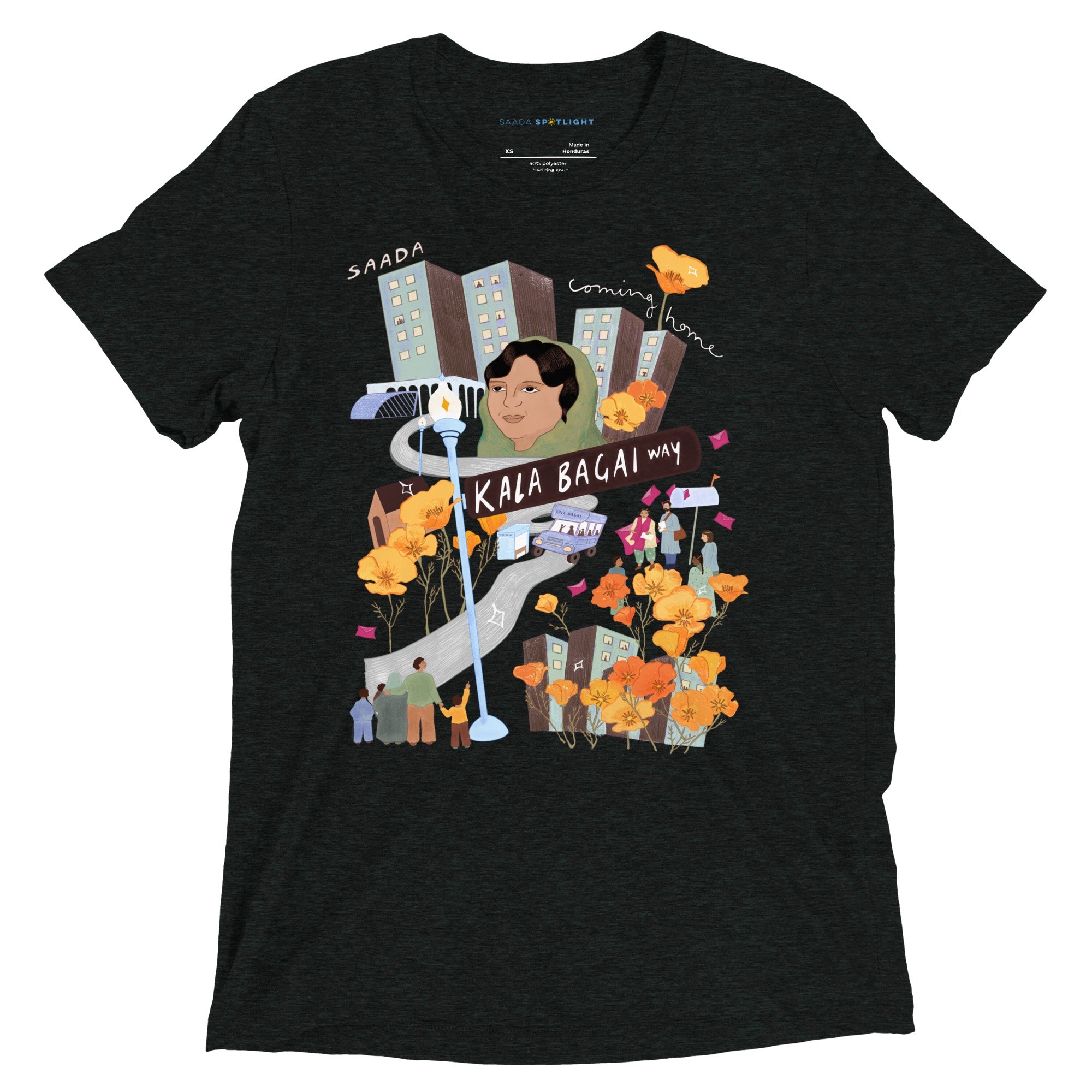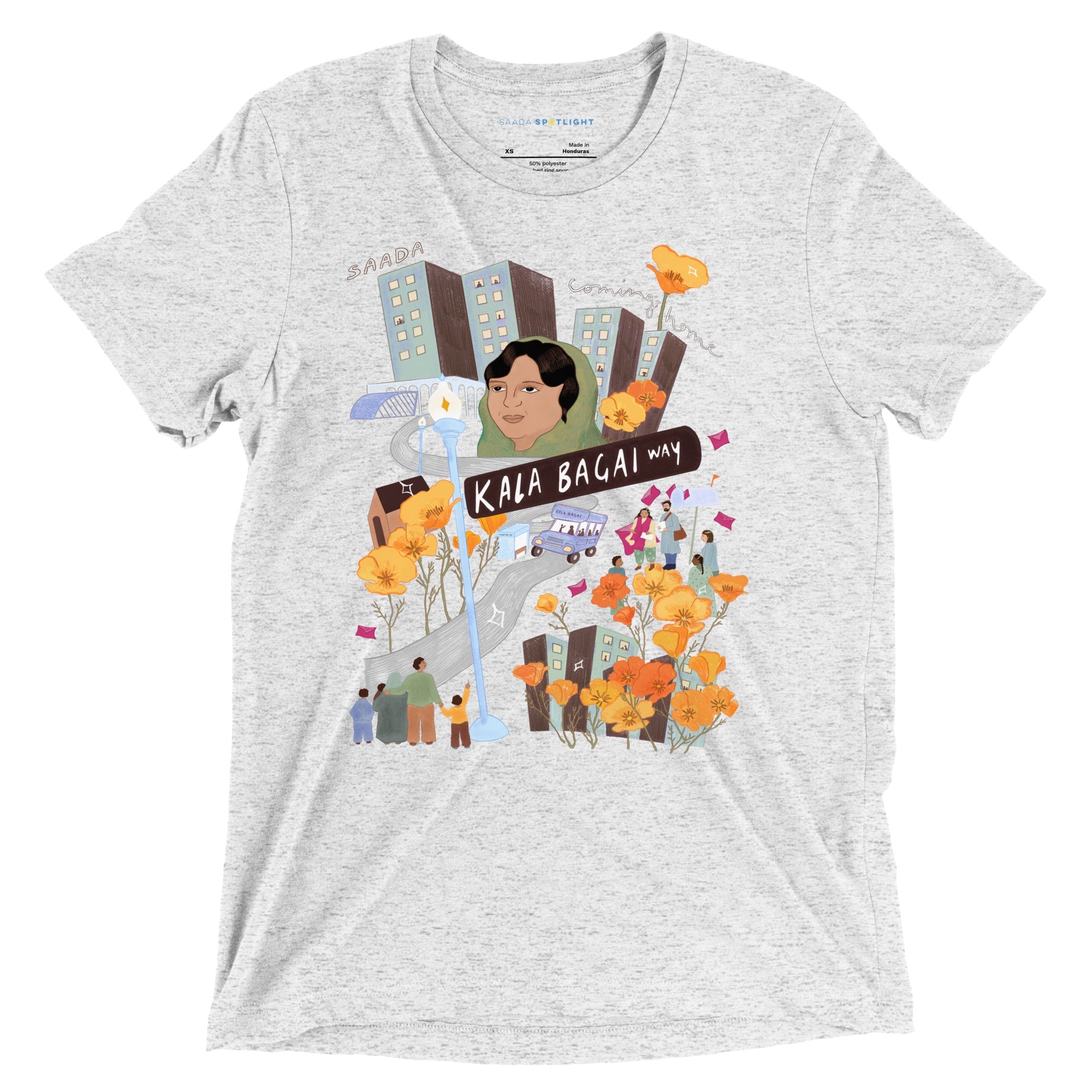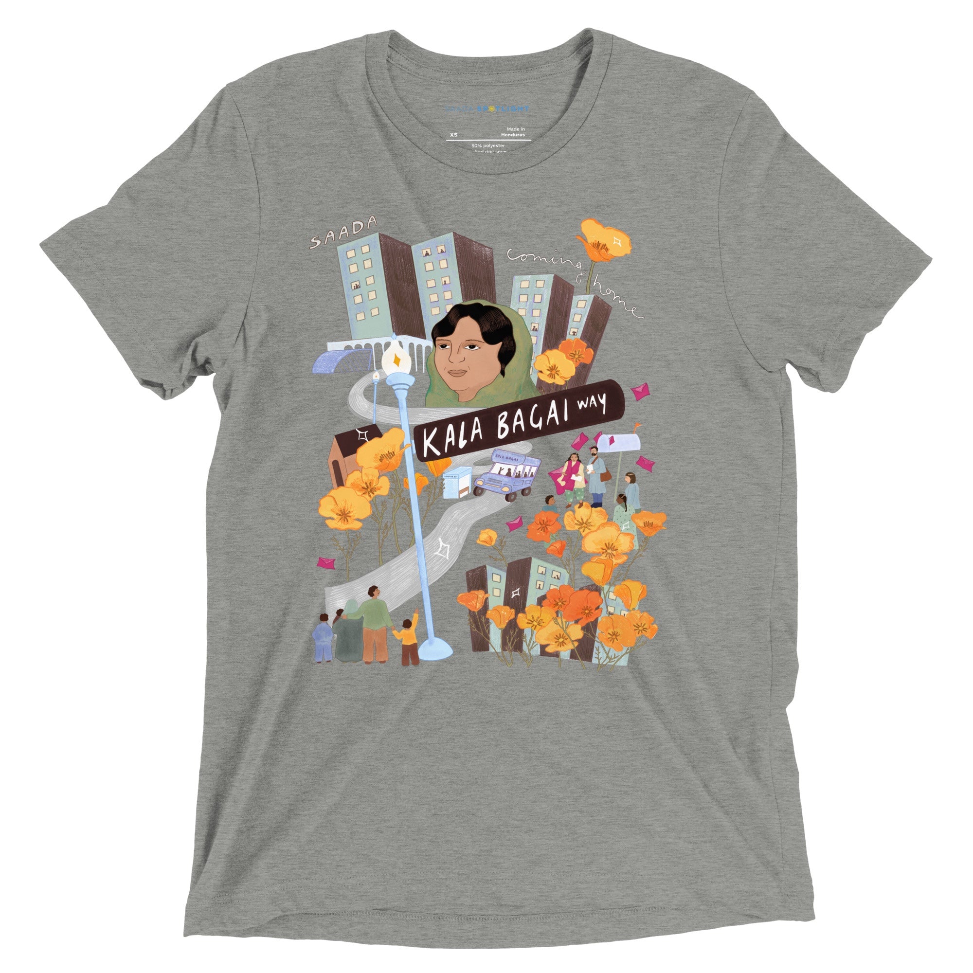 Shurjo Mukhi’s artwork for “Coming Home” was inspired by the campaign that successfully renamed a section of Shattuck Avenue in downtown Berkeley as Kala Bagai Way, as shared in the “Kala Bagai” essay in Our Stories.